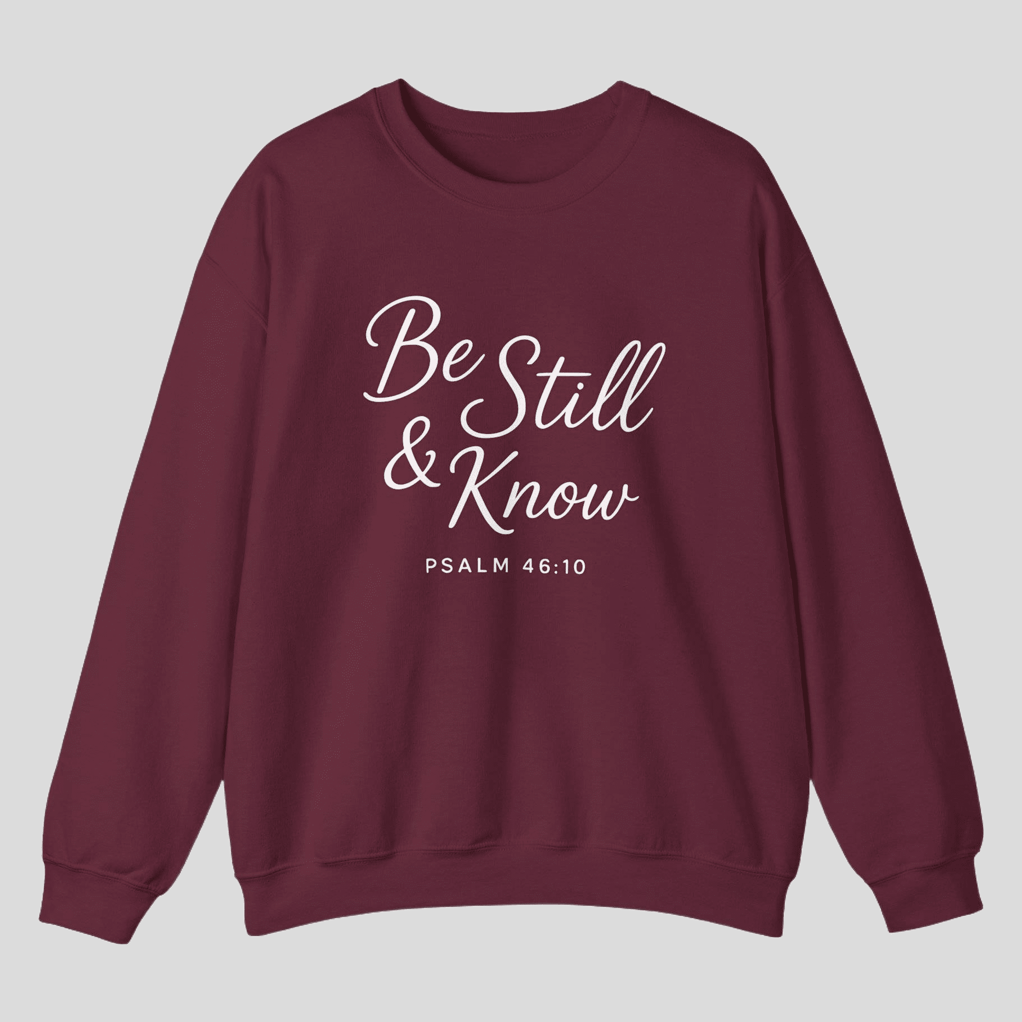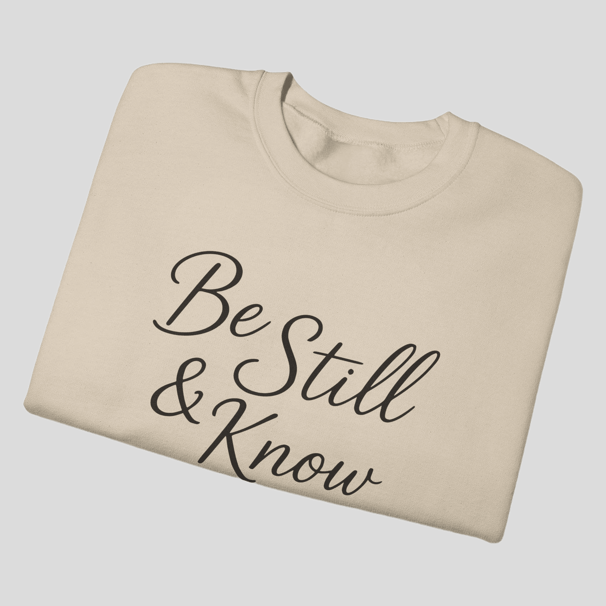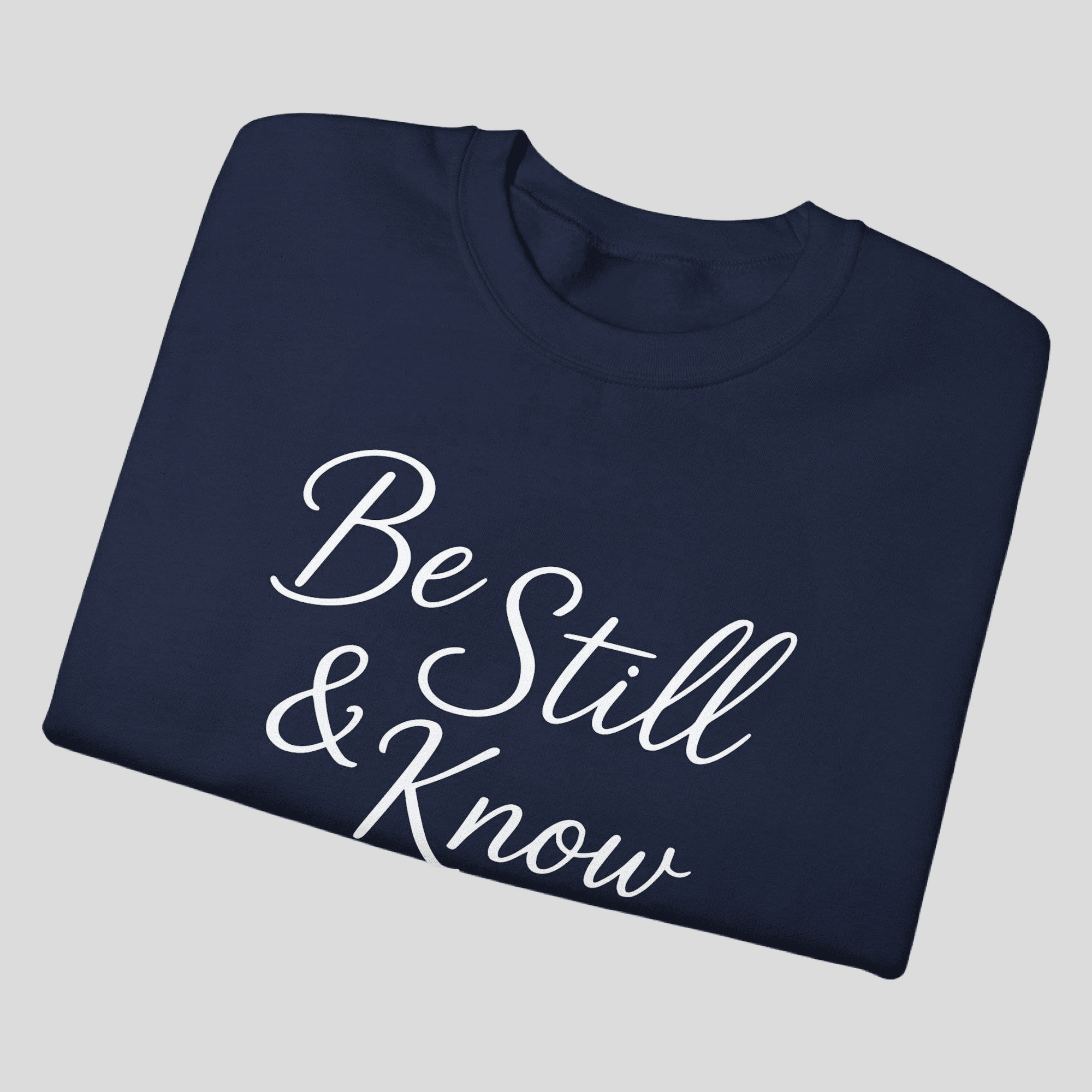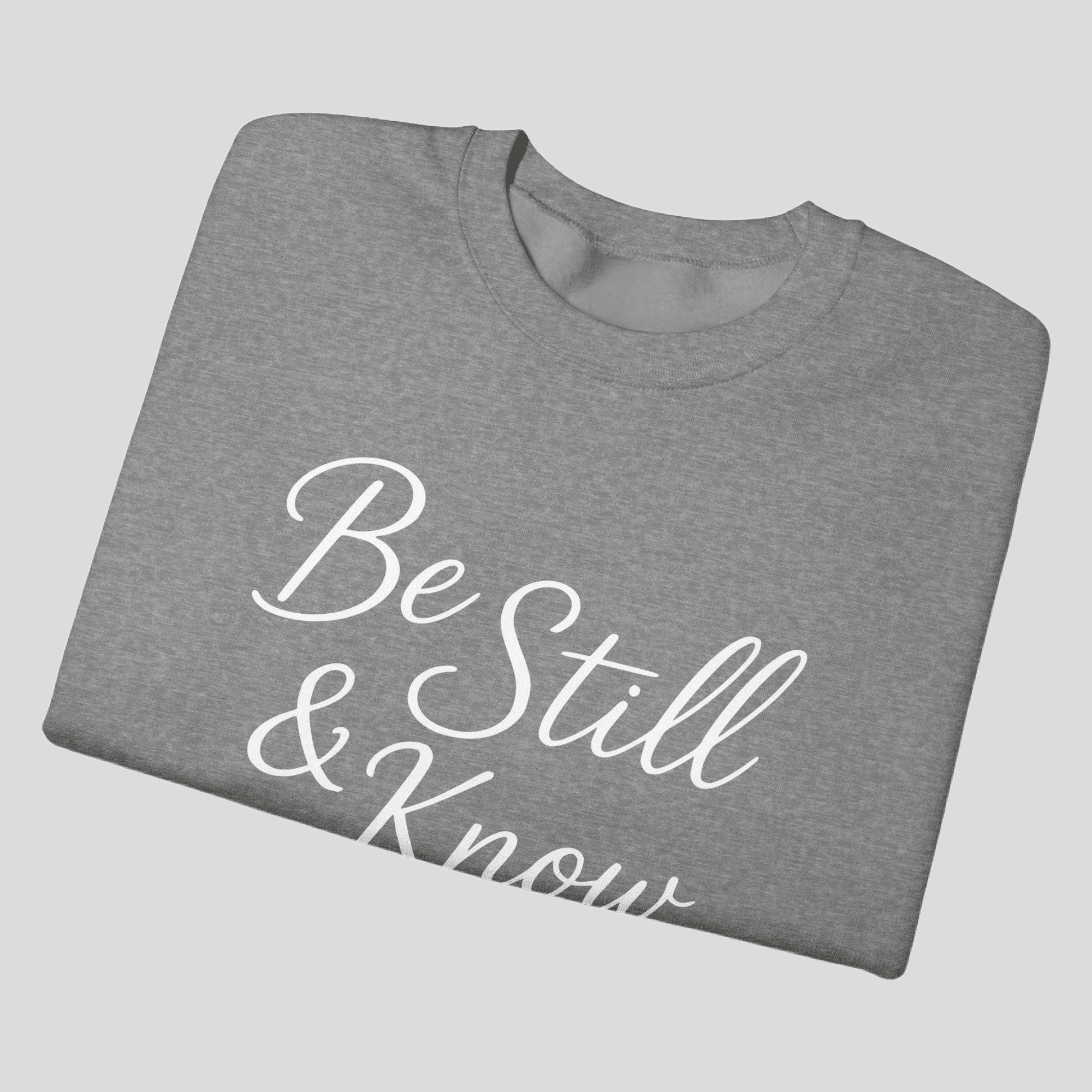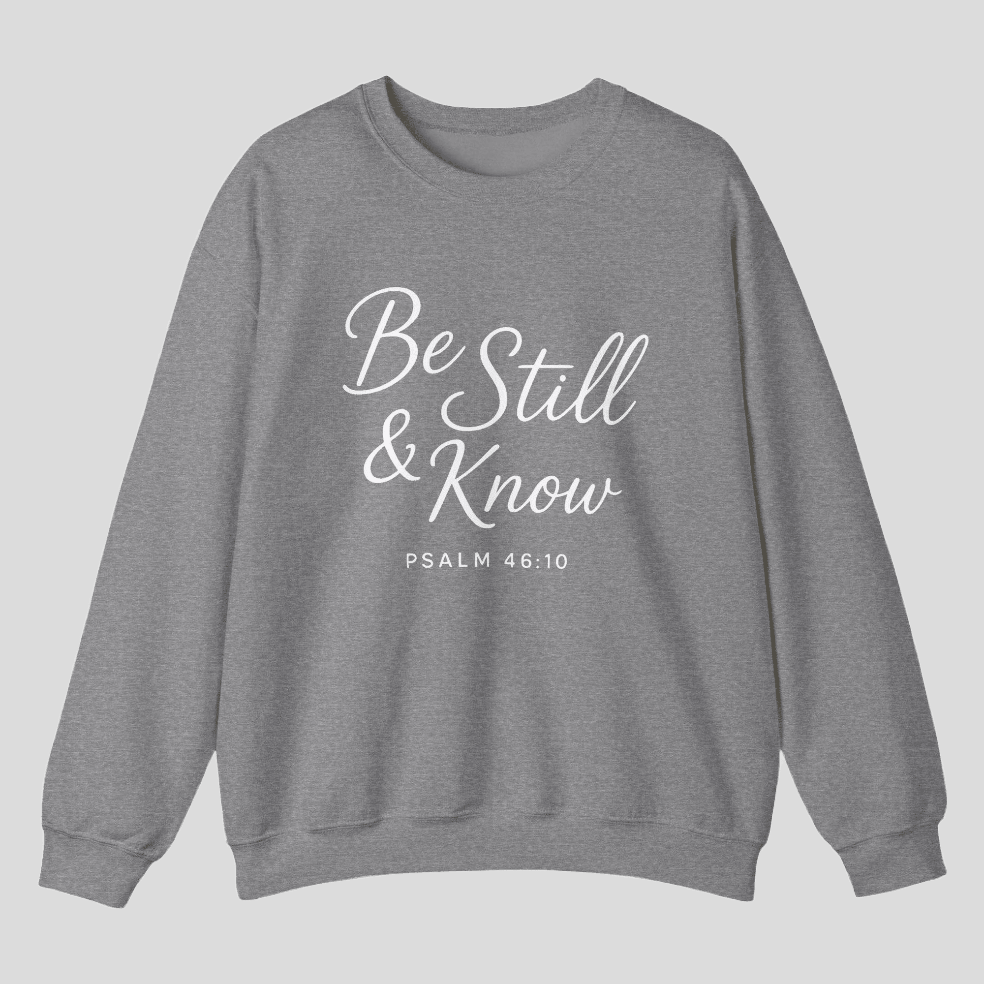A faith-filled Gildan crewneck featuring Be Still and Know from Psalm 46:10. Minimal, comfortable, and purpose-driven—wear your reminder to trust God daily.