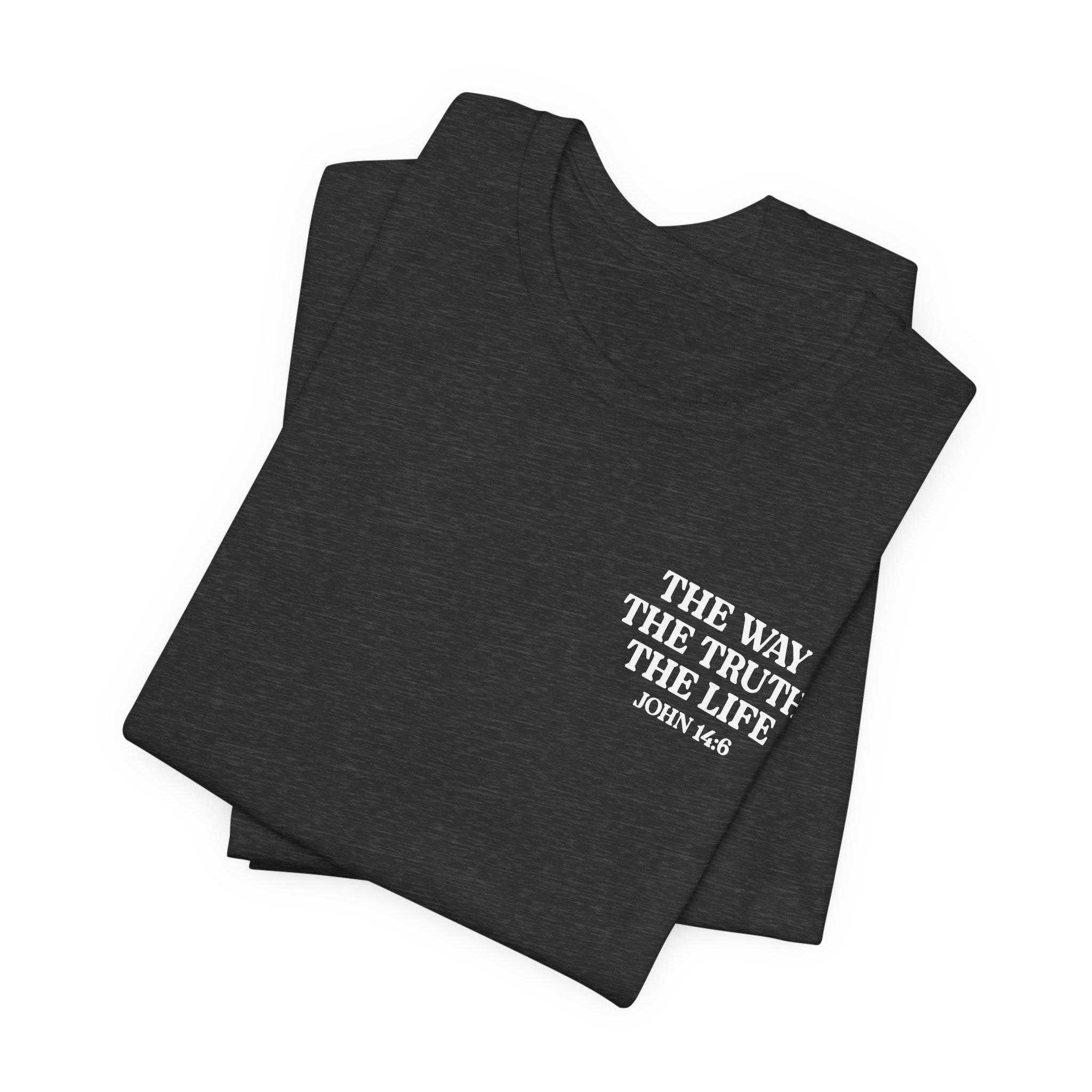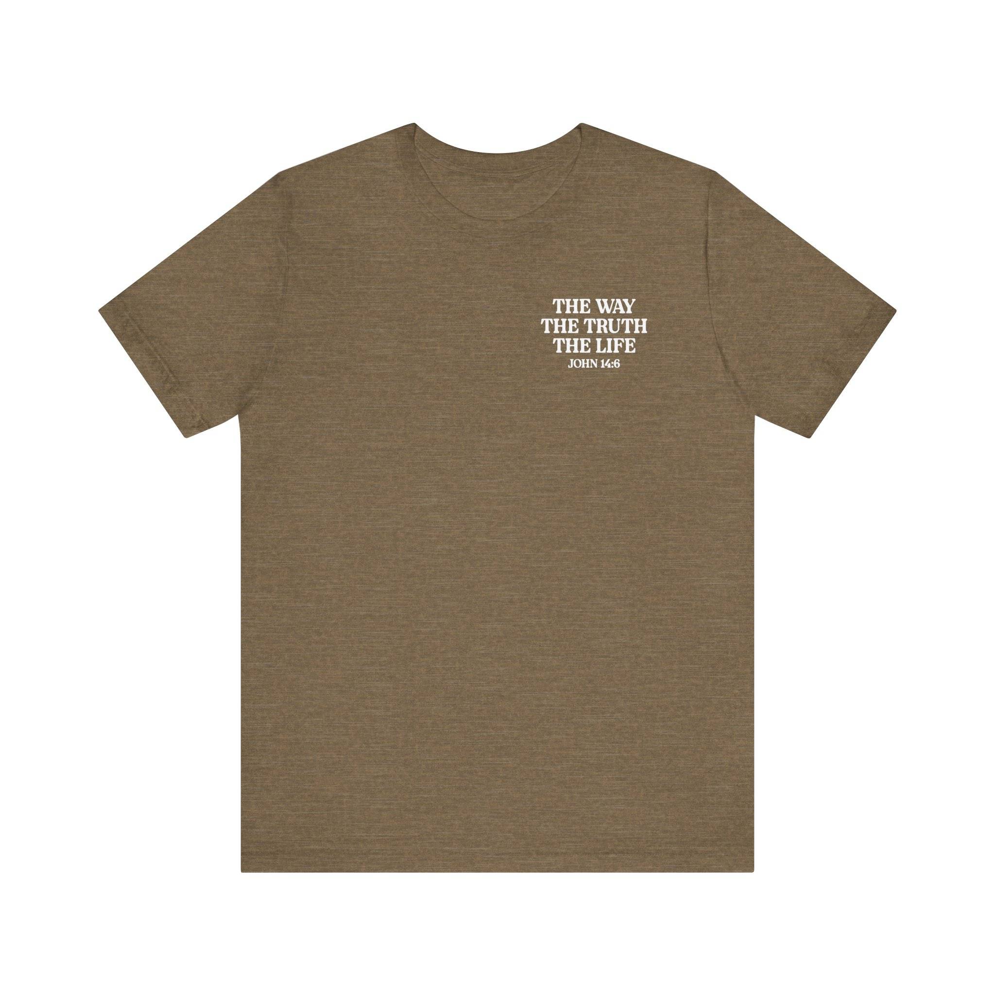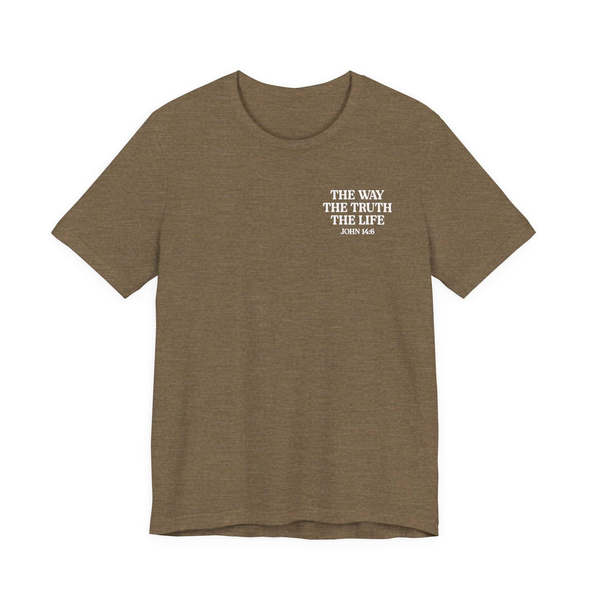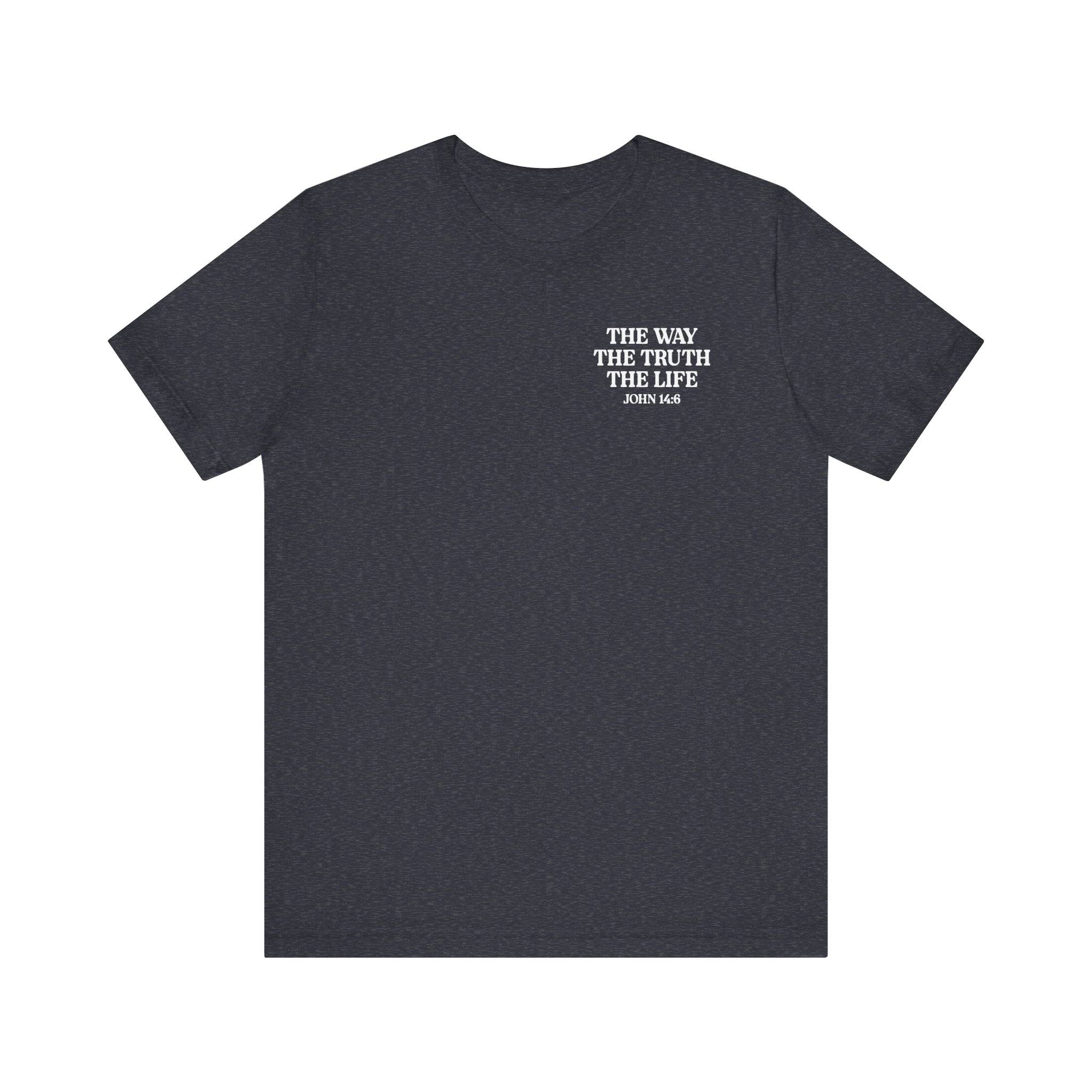 When you wear the “The Way, The Truth, The Life” T-shirt, you’re not just putting on clothes—you’re making a statement of who you follow and how you choose to live.