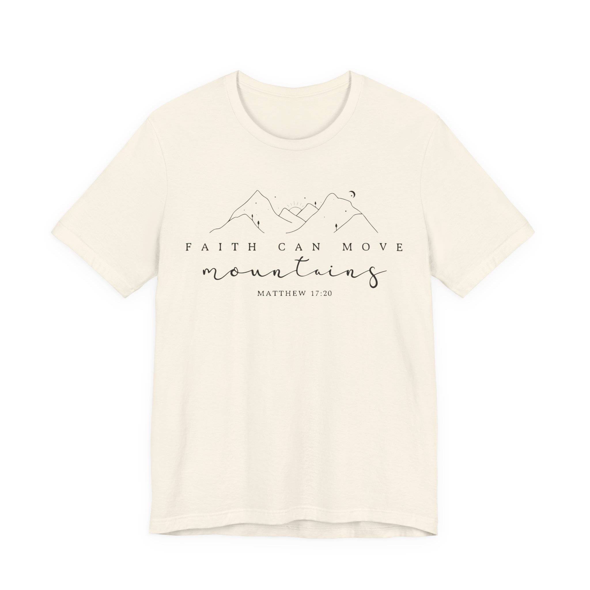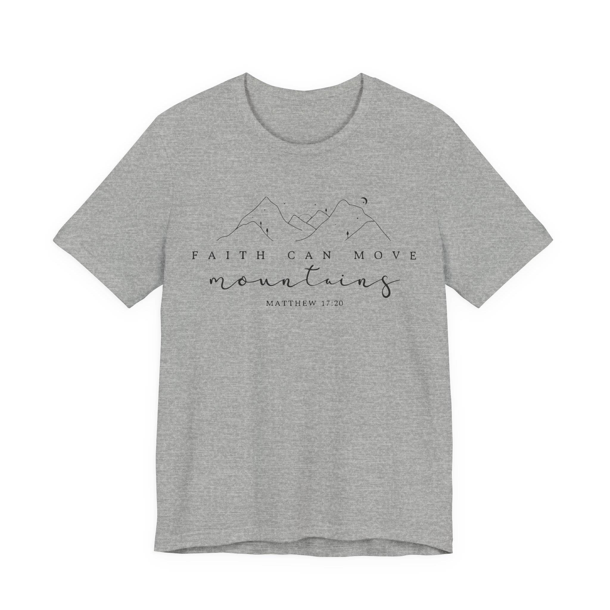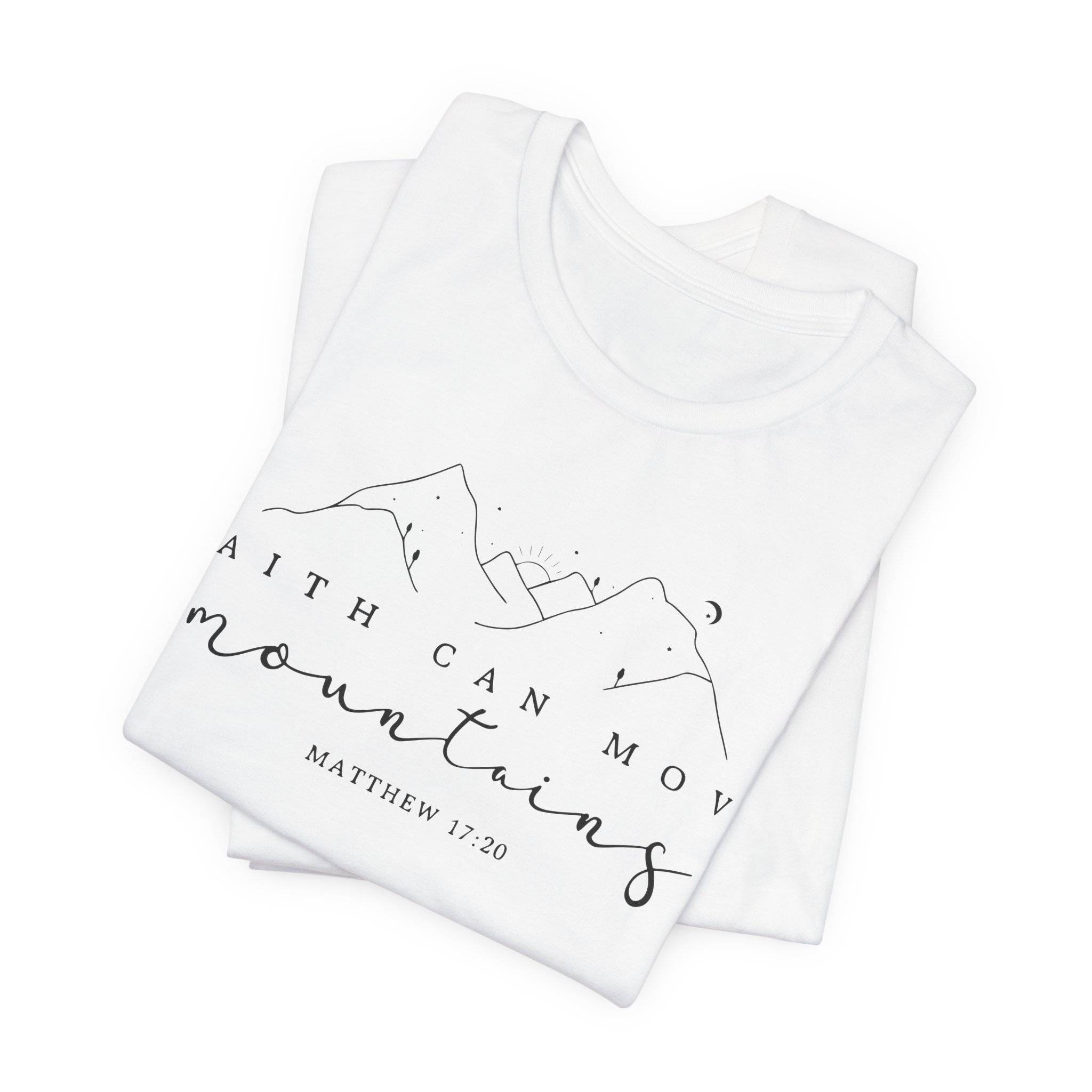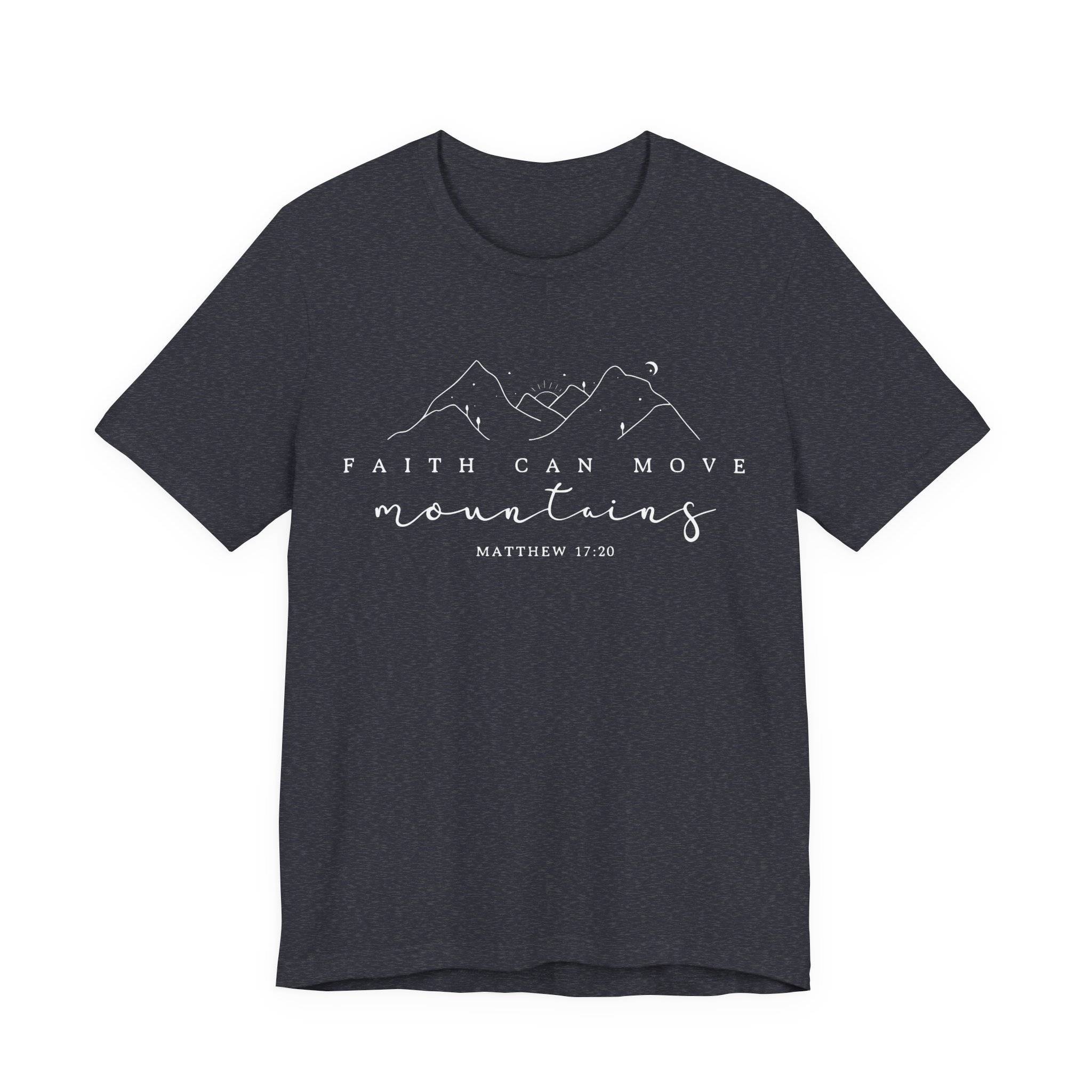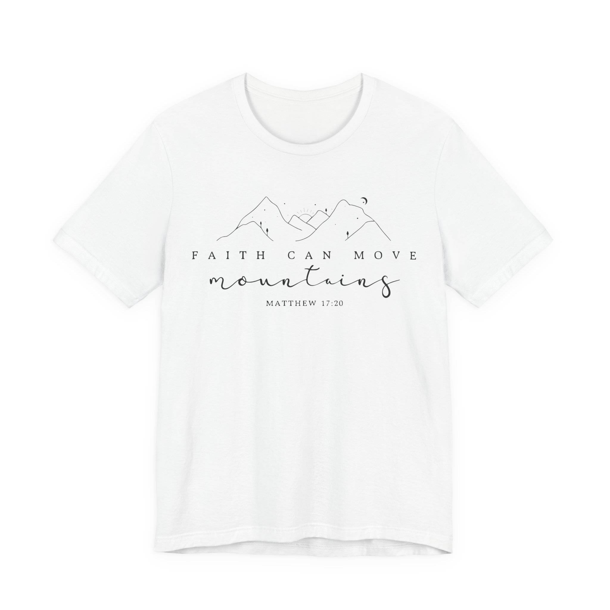 The “Faith Can Move Mountains” Bella+Canvas 3001 T-Shirt combines premium comfort with a bold message from Matthew 17:20—wear your faith with confidence.